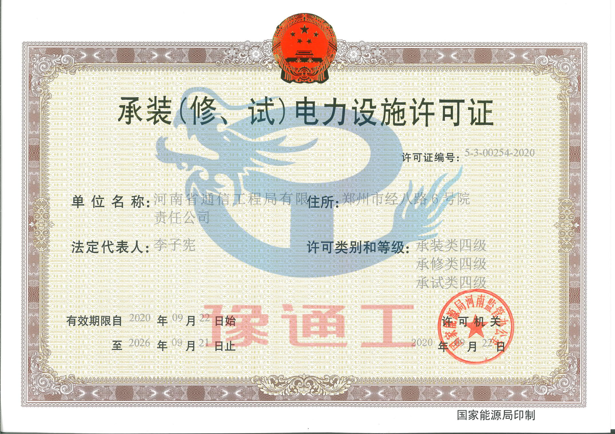 承裝(修、試)電力設施許可證