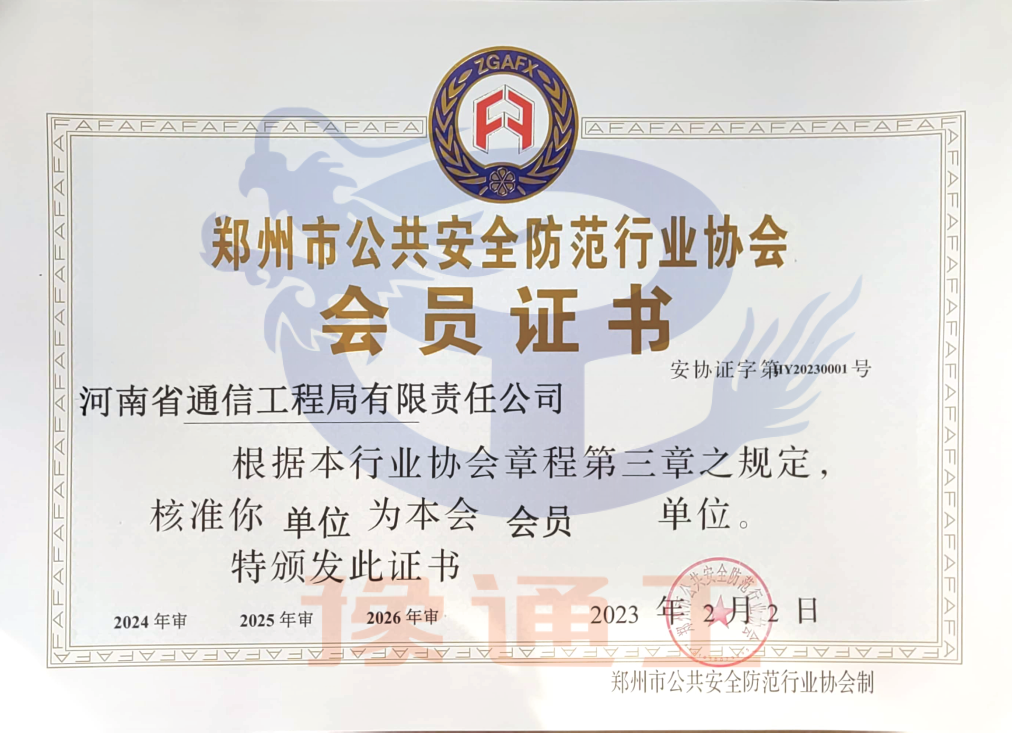 鄭州市安防協會會員證書