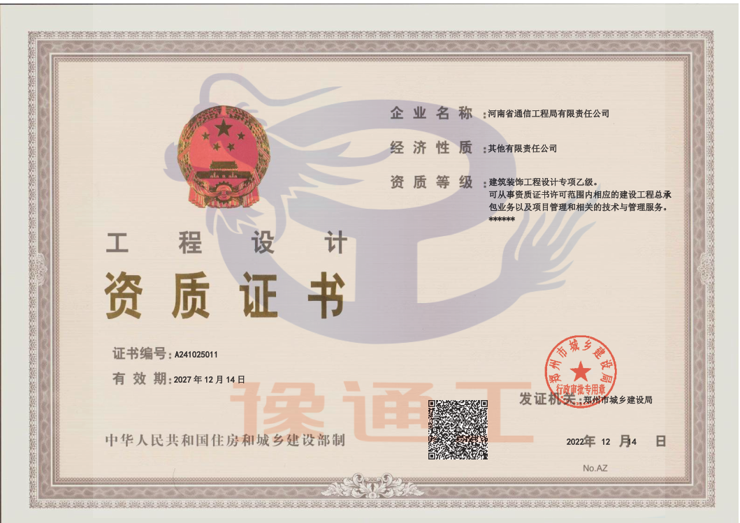 電子通信廣電行業(有線通信、無線通信)專業設計甲級