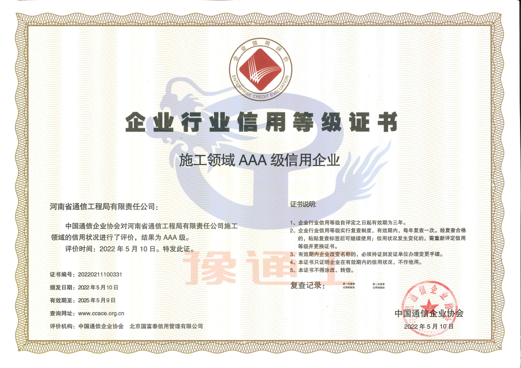 通信施工領域信用企業AAA級