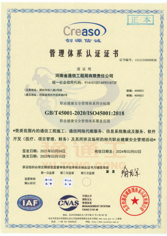 管理體系認證證書(職業健康安全管理)