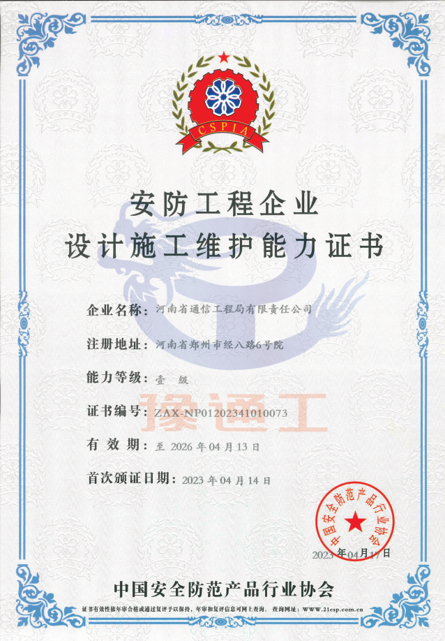 安防工程企業設計施工維護能力證書