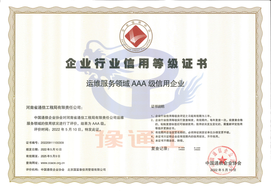 通信運維服務領域信用企業AAA級